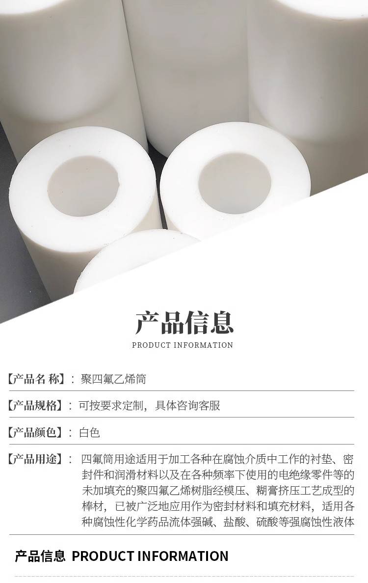 四氟乙烯筒是一种由聚四氟乙烯(PTFE)材料制成的筒状制品,具有优良的耐高温、耐腐蚀、耐老化、耐气候、耐辐照等性能。它可以在-180℃至+260℃的温度范围内长期使用,并且几乎不溶于所有溶剂。 四氟乙烯筒在化工、石油、航空航天、汽车、建筑等领域得到广泛应用,可用作密封材料、绝缘材料、防腐材料等。此外,它还可用于制作各种零部件和器材,如轴承、活塞、活塞环、泵、阀等。